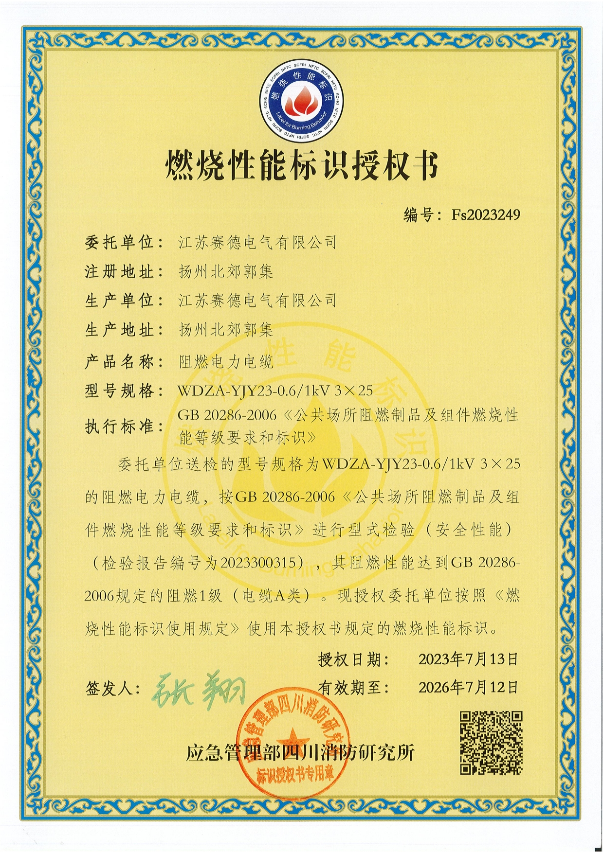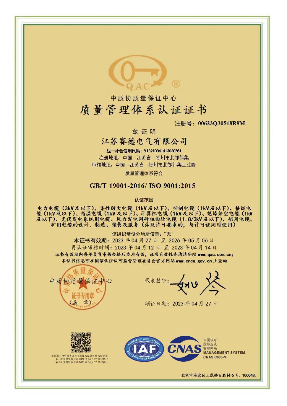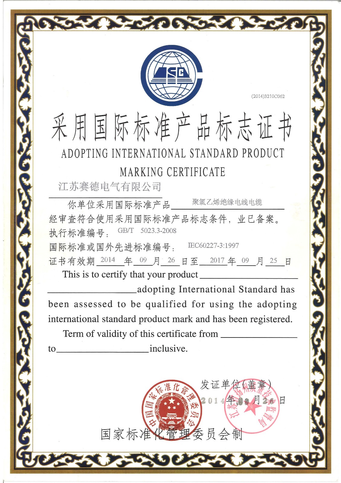 | 23 | 采用国际标准产品标志证书 |