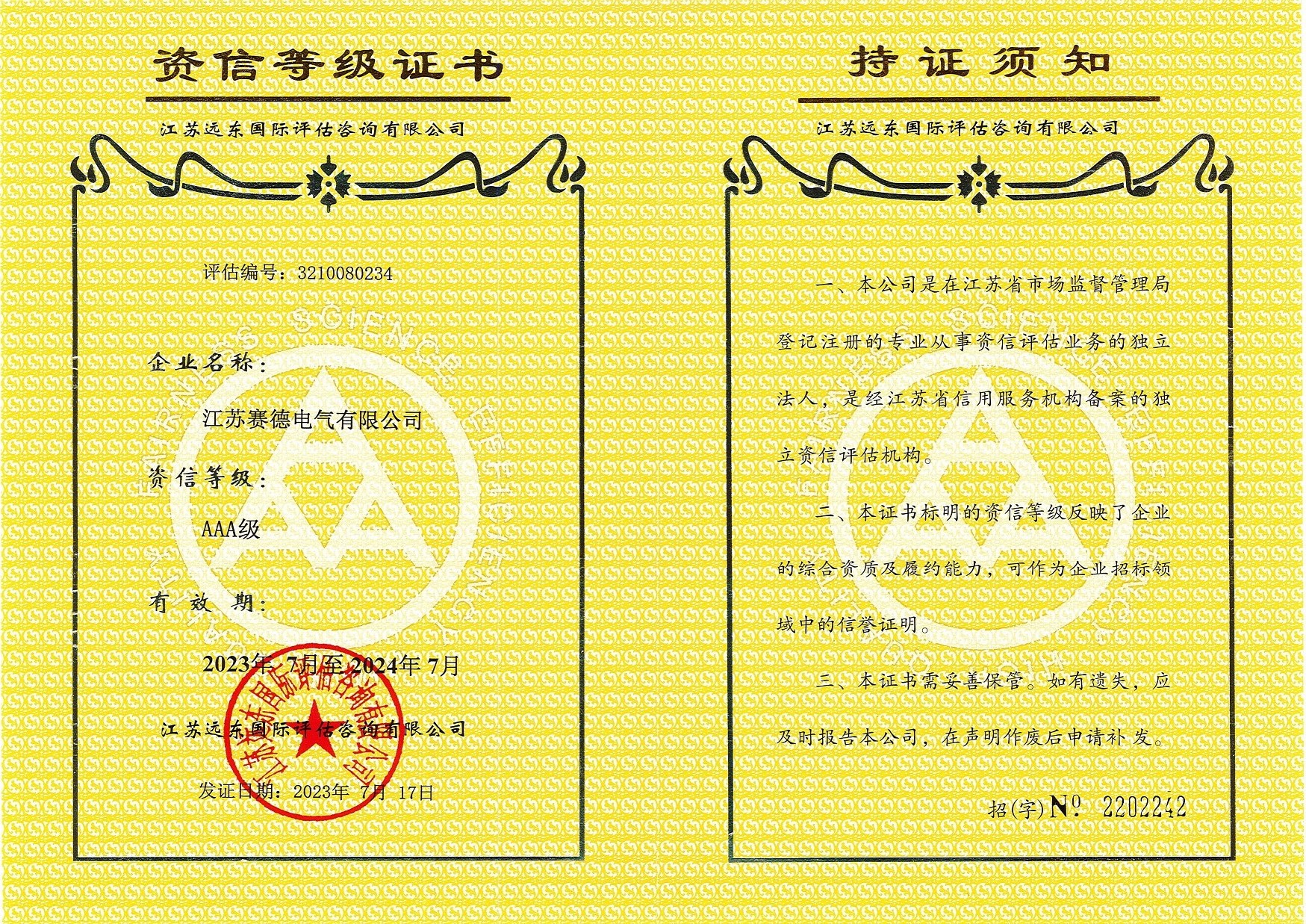 | 16 | 企业信用等级证书(AAA) |