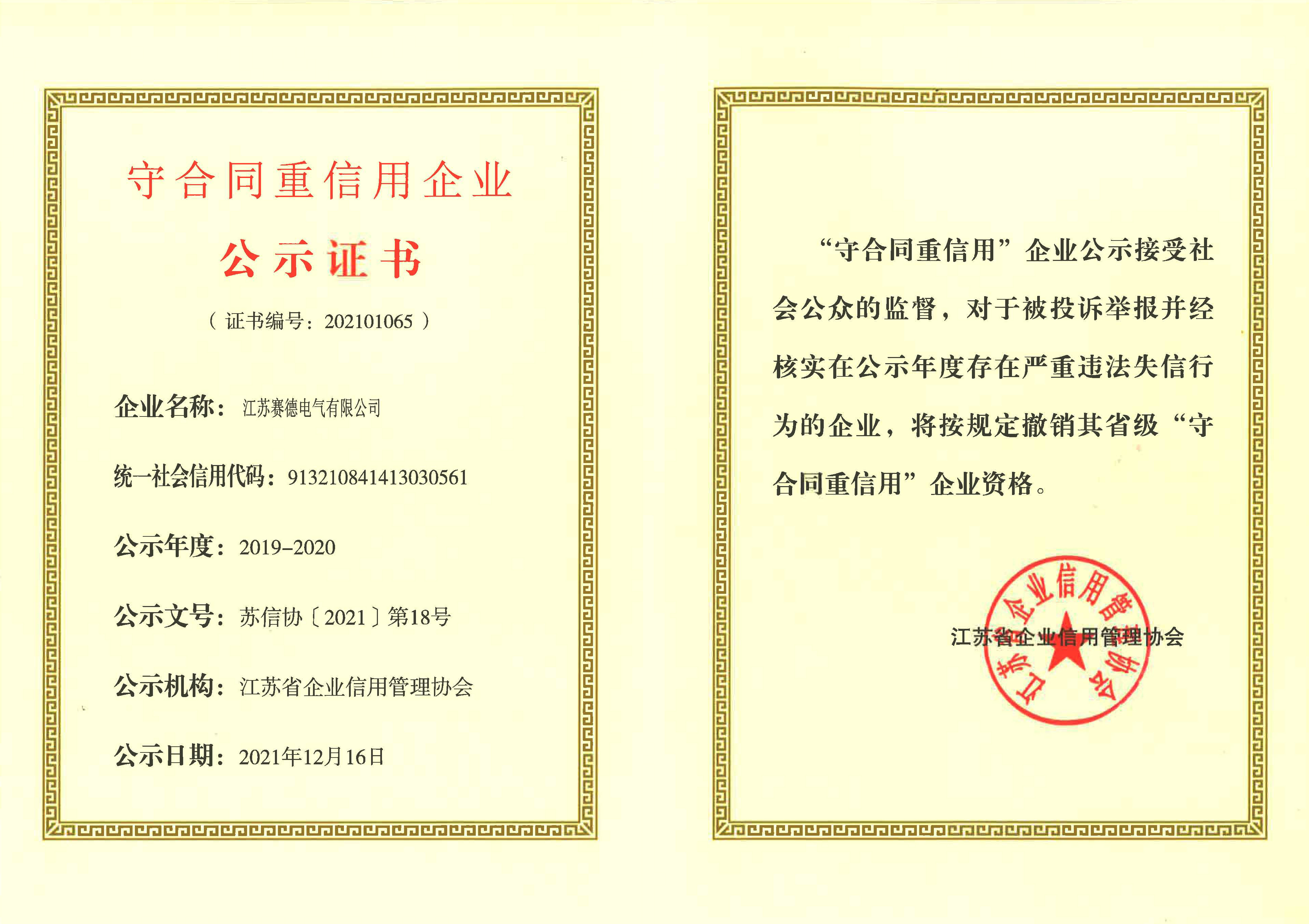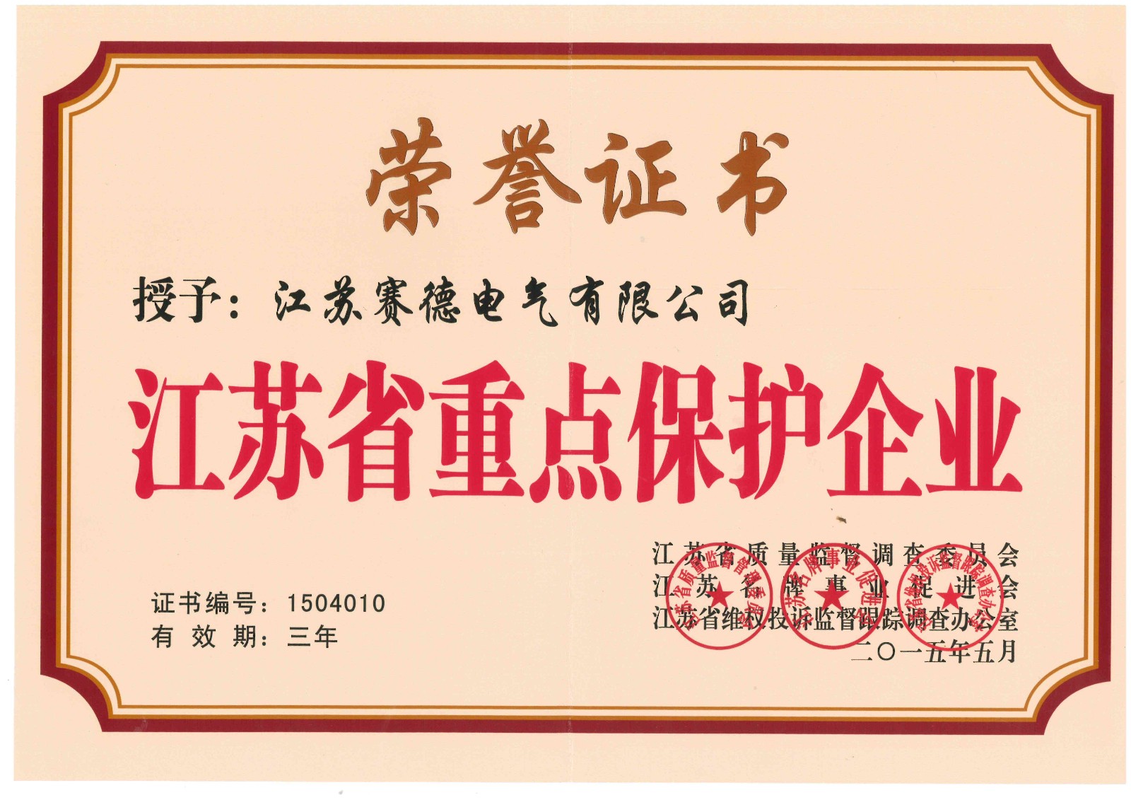 | 21 | 江苏省重点保护企业 |