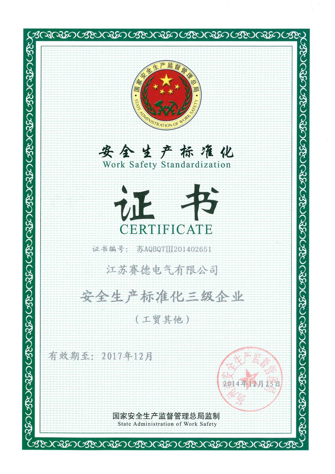 | 13 | 安全生产标准化证书 |