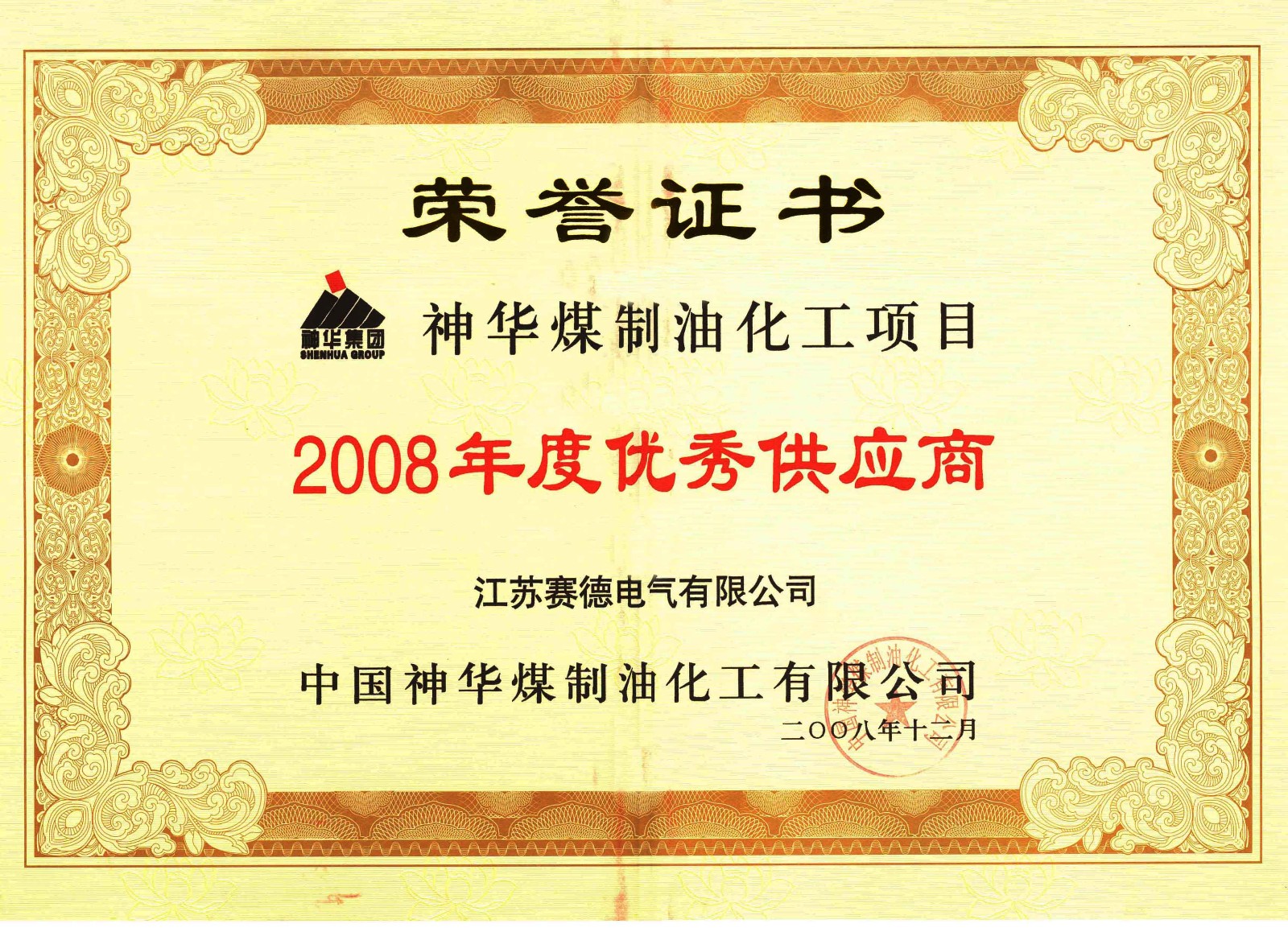 | 29 | 神华煤制油化工项目优秀供应商证书 |